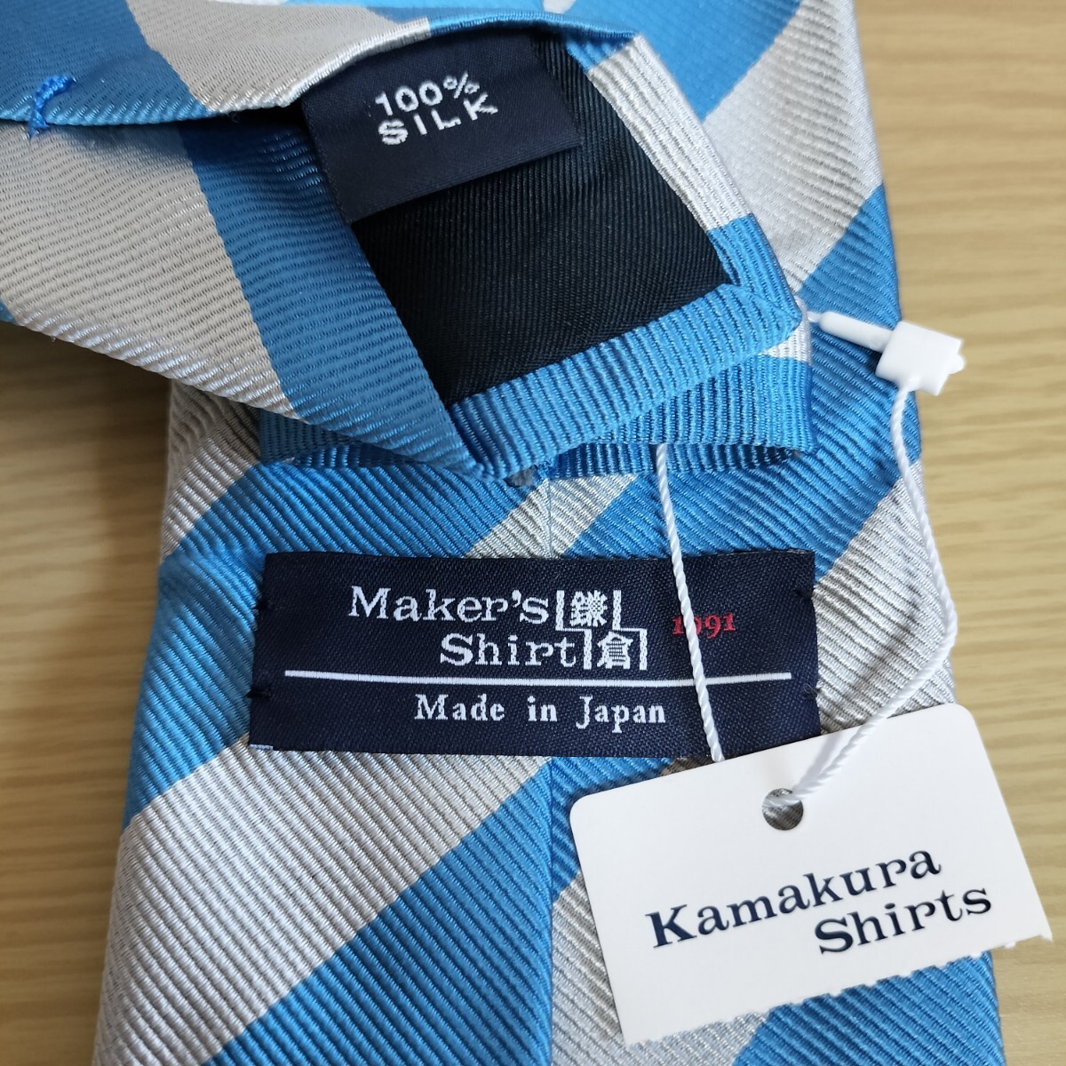 - Maker's Shirt鎌倉シャツメーカーズシャツカマクラ鎌倉 水色シルバーストライプ模様ネクタイ新品 未使用 タグ付き