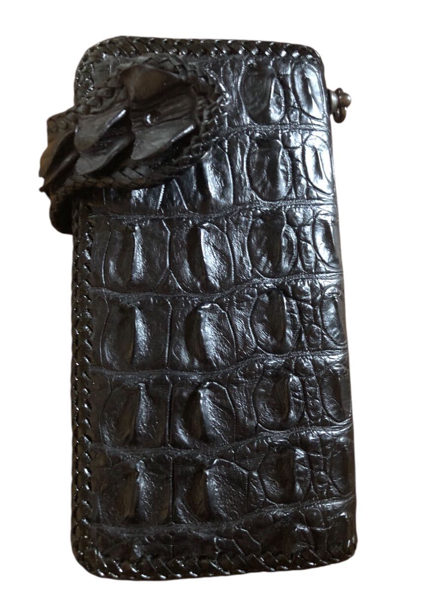 - 新品未使用品 特別注文 ライダース ウォレット クロコダイル 背鰭 Funnyタイプ 小銭入れ 有り カード入れ コンチョ 無し ハーレ バイク