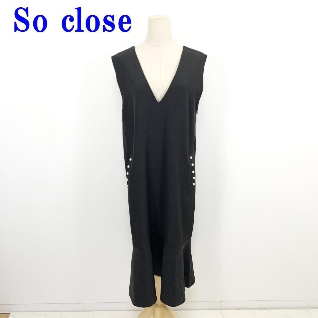 > ソークロース ノースリーブワンピース ブラック So close パールボタン マーメイドライン Vネックポリエステル L C3510