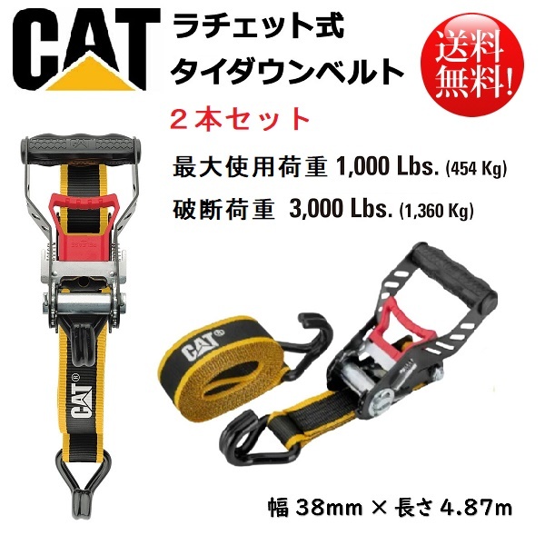 - ① 未使用品 CAT/キャタピラー ラチェット式 タイダウンベルト/ラッシングベルト 2本セット 九州・北海道・沖縄・離島も送料無料 KIENT