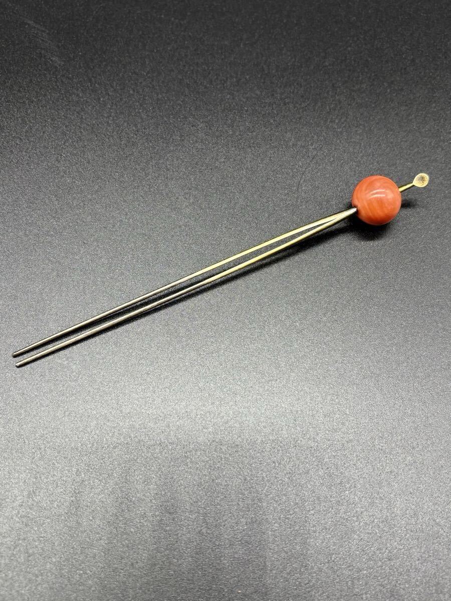 - No. 241珊瑚 サンゴ かんざし 和装小物 玉簪 髪飾り アンティーク 1.5cm