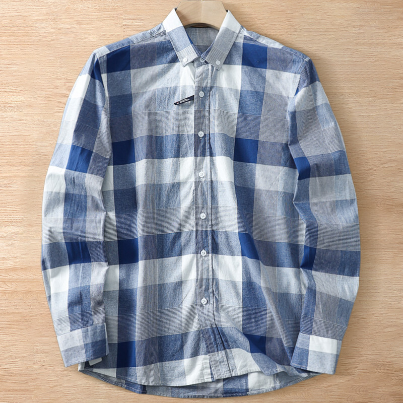 > Y6203-3XL ブルー 新品 DCKMANY 格子柄シャツ 先染め 綿100% ウォッシュ加工 長袖シャツ メンズ 夏秋 コットン ボダンダウン ワイシャツ