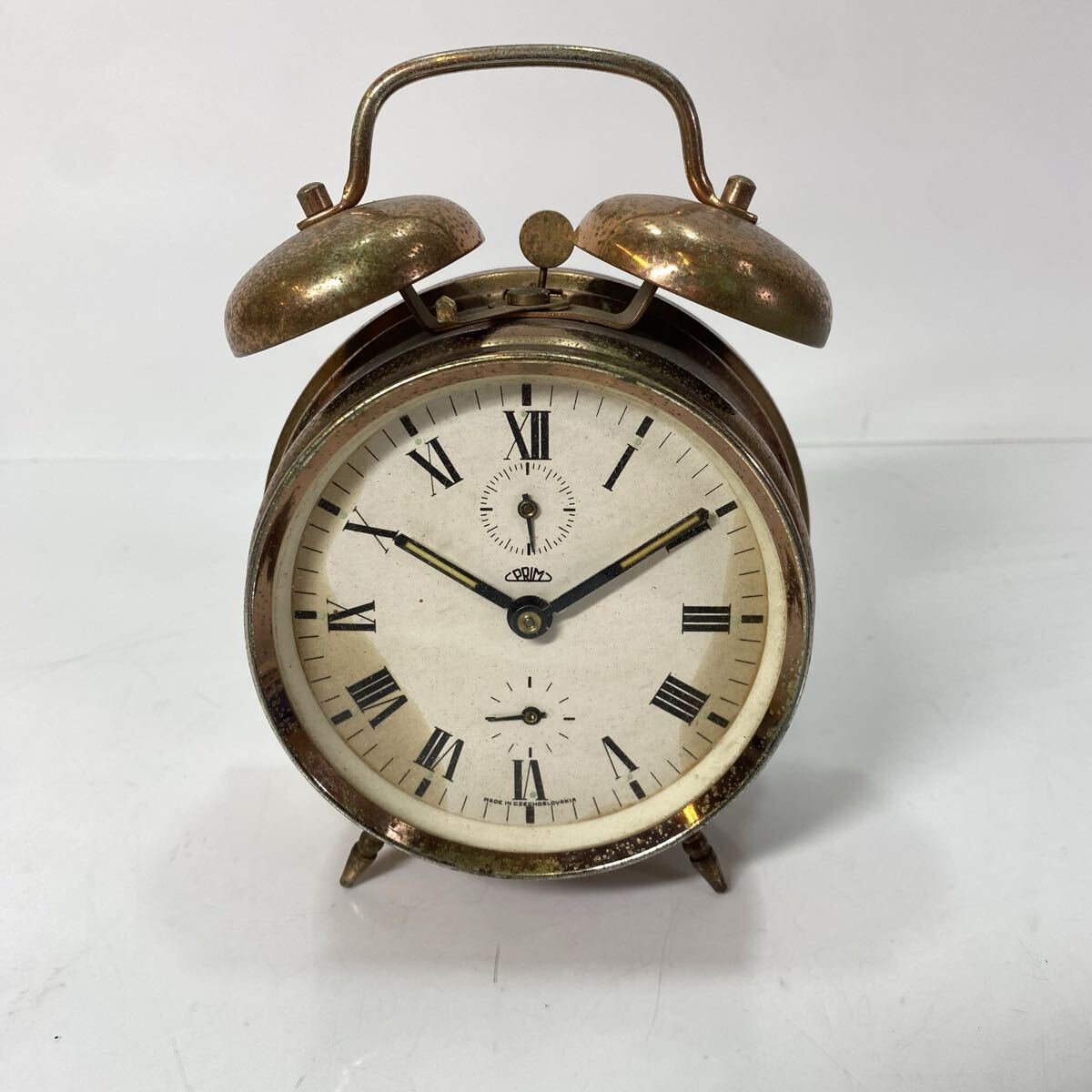- 置き時計 アナログ ゼンマイ式 目覚まし ベル アラーム 金属製 レトロ インテリア 置物 飾 現状品