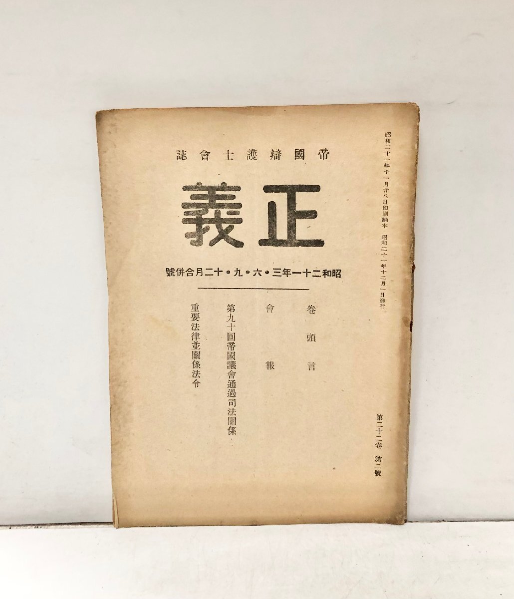 - 正義(帝国弁護士会誌)昭21 3・6・9・12月合併号 62P