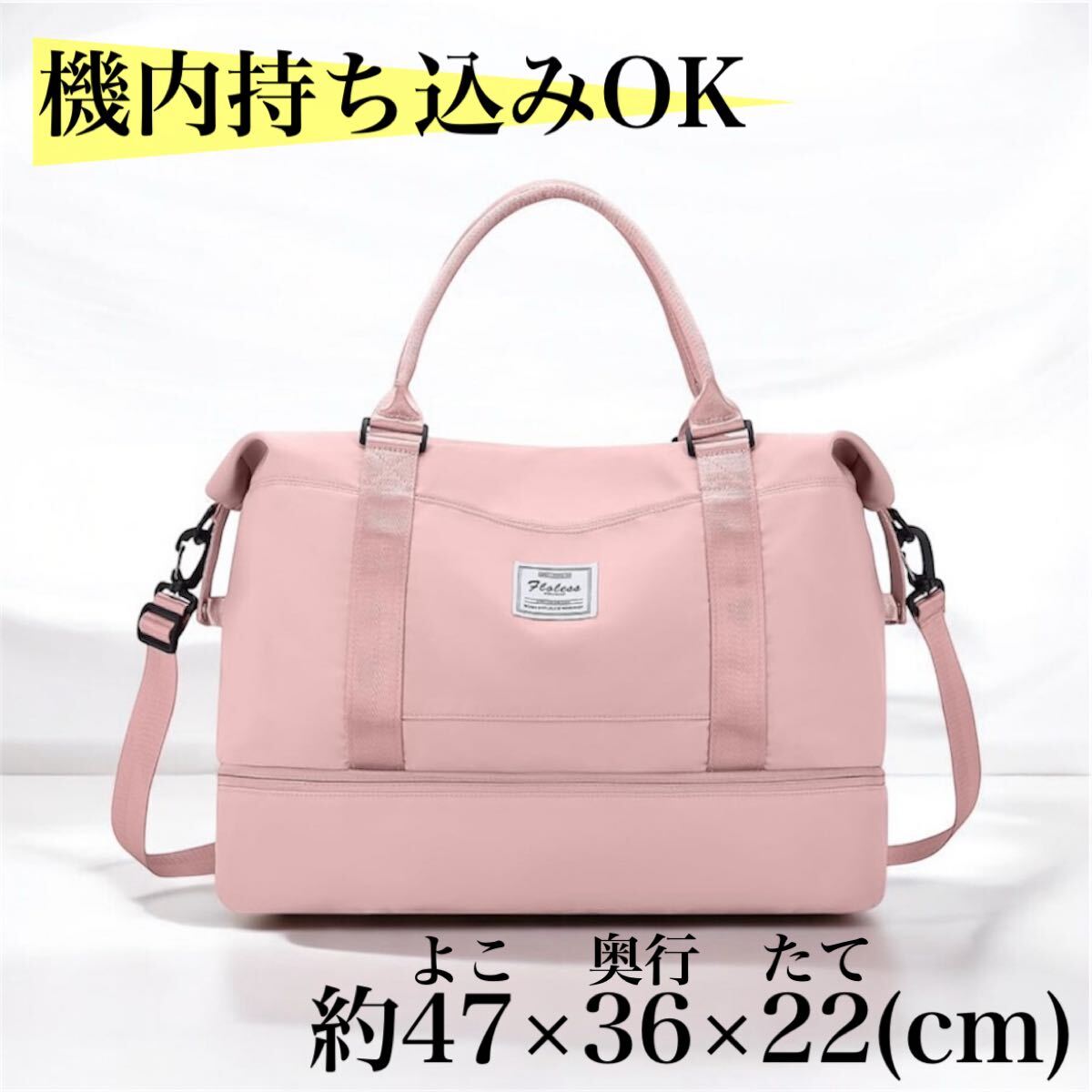 - 旅行バッグ ショルダーバッグ ボストンバッグ 機内持ち込み可 大容量 軽量 スポーツバッグ 旅行 修学旅行 ゴルフ ピンク 靴収納 ジム 部活