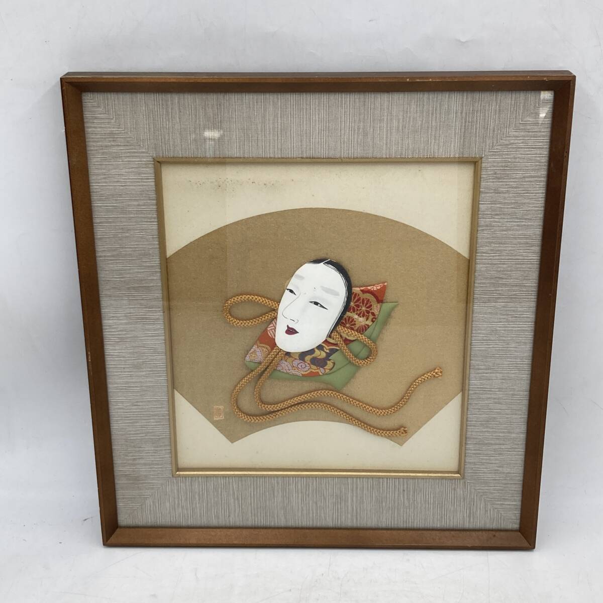【長期保管品】押し絵 能面羽衣 色紙 額付き インテリア 芸術 骨董 1点