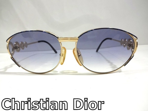 > X5H006■美品■ クリスチャン・ディオール Christian Dior ゴールド色&ネイビーデザイン サングラス メガネ 眼鏡 ソフトケース付き