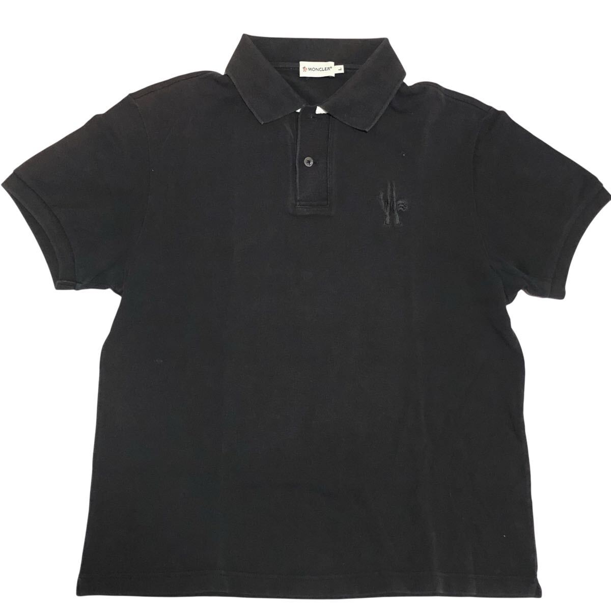 > 【モンクレール】本物 MONCLER 半袖ポロシャツ ロゴモチーフ サイズL 半袖シャツ トップス 黒色系 コットン100% 男性用 メンズ
