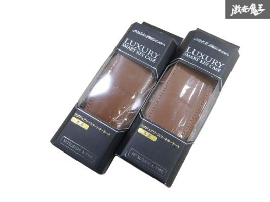 > 【未使用】Silk Blaze シルクブレイズ ラグジュアリー キーケース ブラウン 本革 ロゴ入り 三菱 A-TYPE 2個セット スペアキーにも 棚29-3