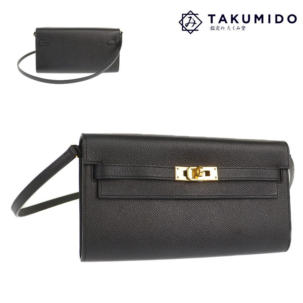 - 代引不可 エルメス HERMES ショルダーウォレット ケリーウォレット トゥーゴー Z刻印 2021年製造 ブラック ゴールド金具 中古AB 281773