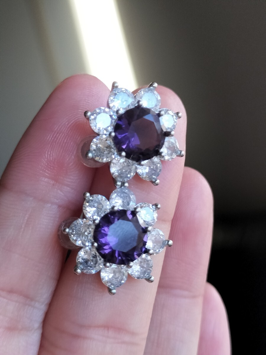 - パープルサファイア 合成宝石 大粒 濃紫 向日葵 ピアス 両耳用