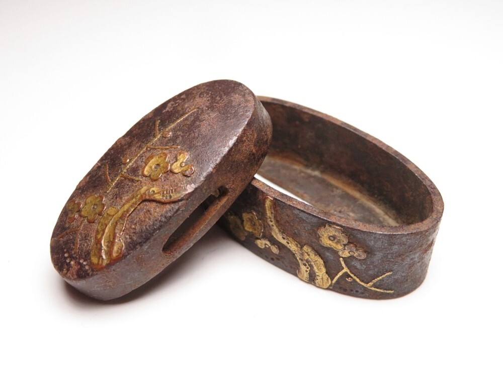 - 【11138】刀装具 江戸~明治 鉄地 梅 縁頭(初品・買取品)
