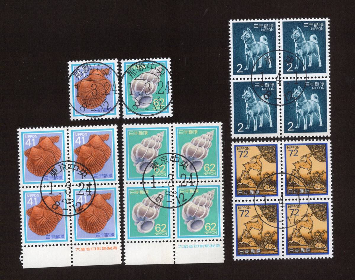 > 【初日印/満月印】ヒオウキガイ/オオイトカケガイ/秋田犬/春日山蒔絵硯 [東京中央/那覇中央/1.3.24・赤坂/1.4.1] 田型/銘版付/単片