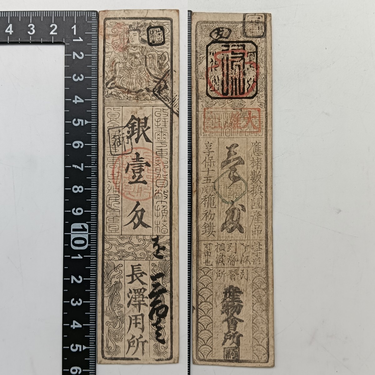 - 【W0067】江戸時代 古札 藩札 私札 銀壹刄 御印 大灘組朱印 貨幣 古紙幣 古文書 骨董品 アンティーク