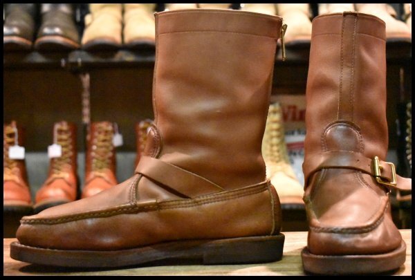 > 【7.5EE 良品 白タグ】RUSSELL MOCCASIN ラッセルモカシン ゼファーブーツ ブラウン 茶 ビブラム バックジップ ブーツ HOPESMORE
