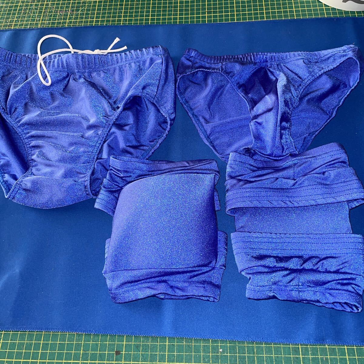 - Lサイズ ロイヤルブルー3点セット ショートタイツ アンダーショーツ ニーパット Lサイズ3点セット プロレス試合用3点セット 水着