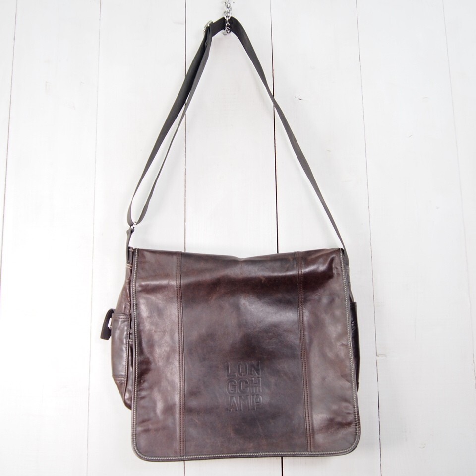 - ロンシャン LONGCHAMP レザーショルダーバッグ フラップショルダーバッグ ダークブラウン
