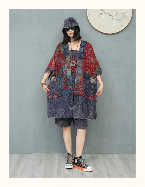 - gl 2508 袢纏 羽織物 カーディガン チュニック トップス バッチ 綿&麻 洋服ミックス アンティーク風 花柄2