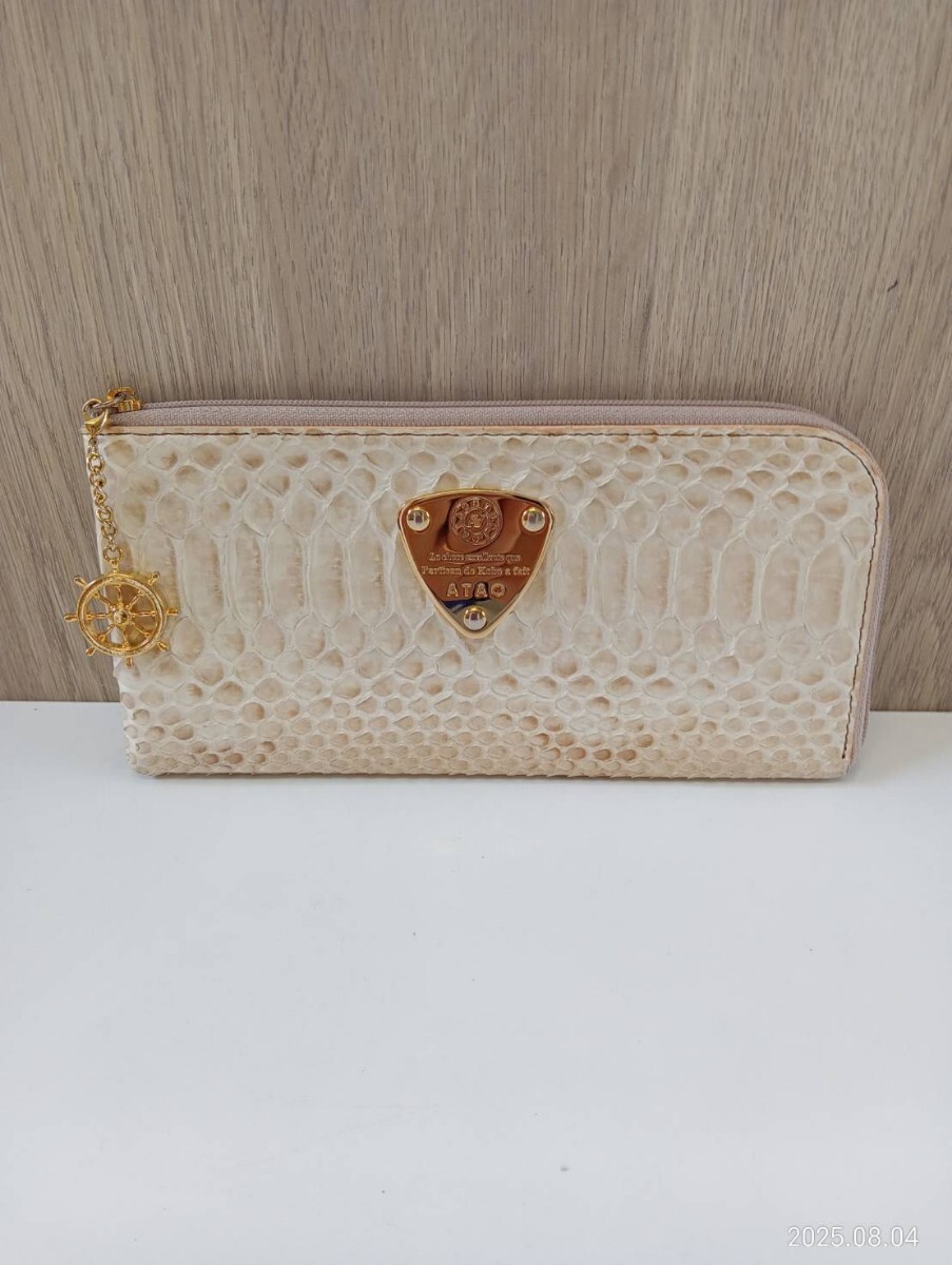 - 【中古品】 アタオ ATAO ラウンドジップ ウォレット 長財布 パイソン ゾチックレザー 舵チャーム 現状品