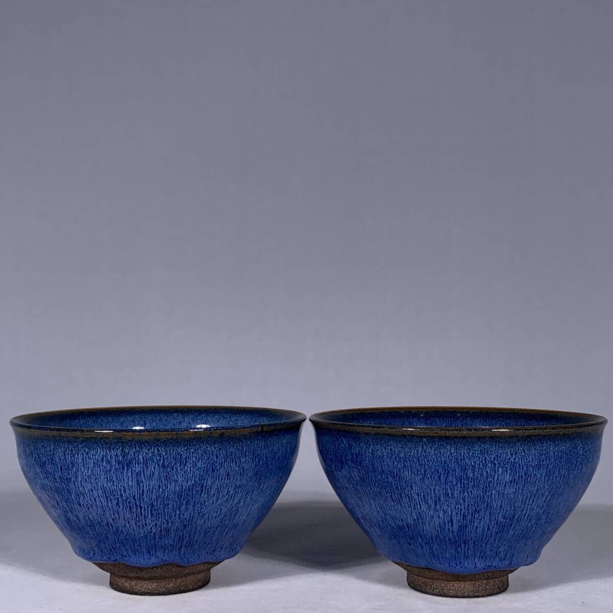 - 宋 古陶磁器 建窯 藍釉 窯変 盃 酒器 兔毫盞 建盞 極細工 時代物 東洋彫刻 古賞物 中国古玩 中国古美術 中国唐物