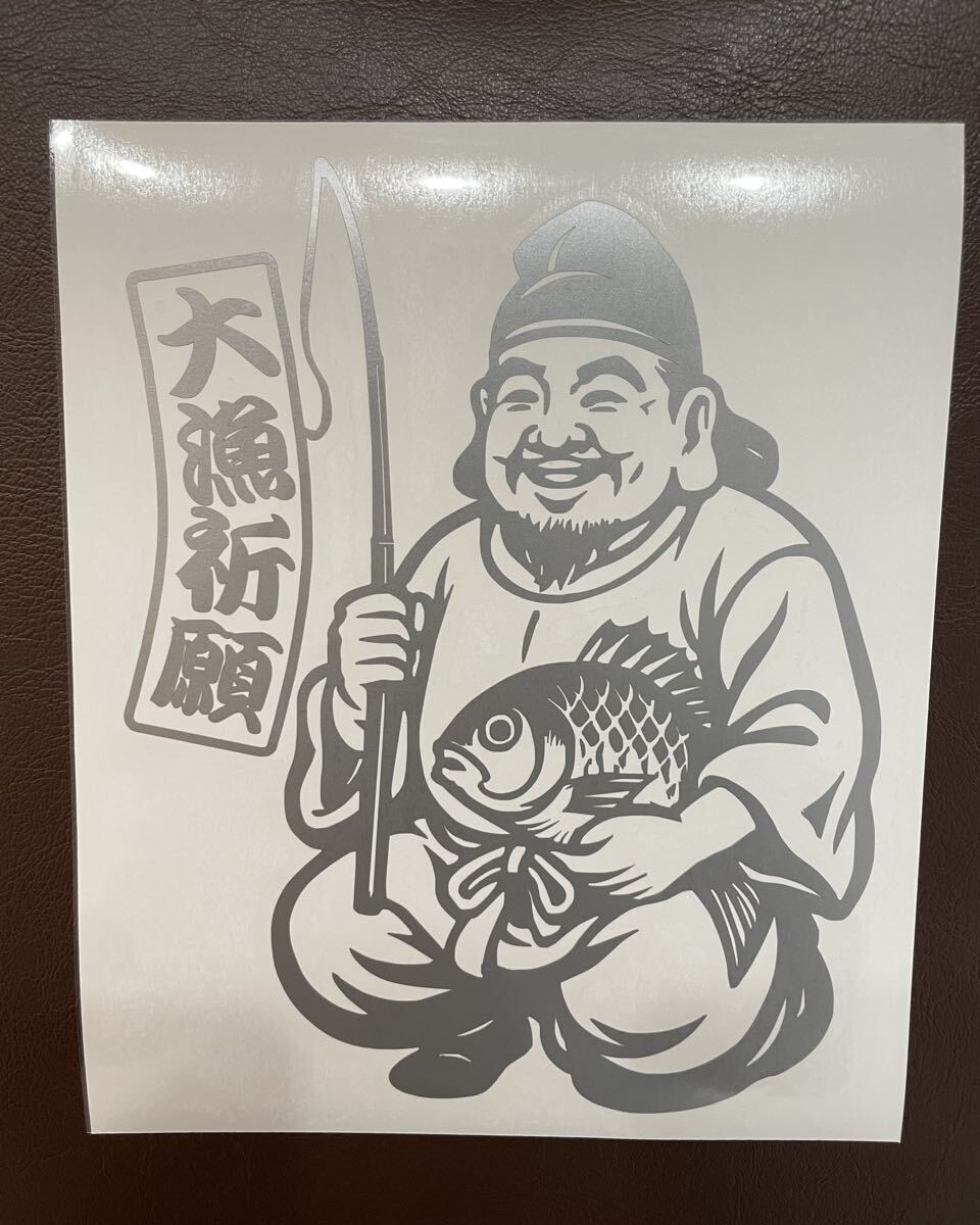 - 送料無料 恵比寿様 真鯛 大漁祈願 カッティングステッカー シルバー 海釣り
