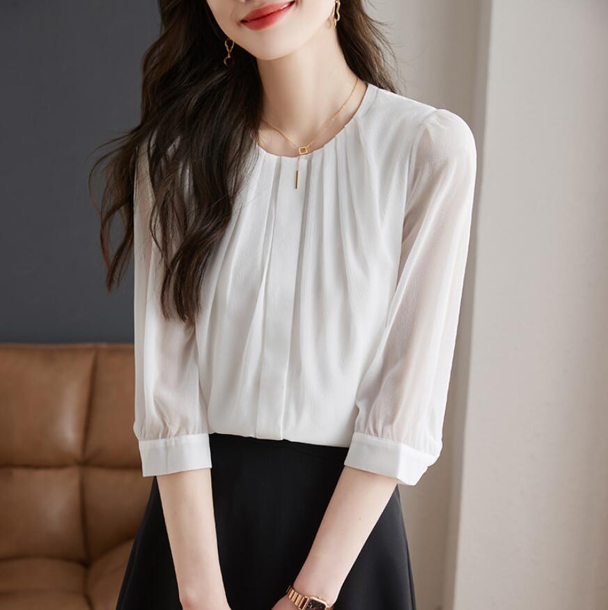 - 人気推薦 /レディース トップス シャツブラウス 七分袖 ブラウス 可愛い 無地 フォーマル 通勤 お出掛け お呼ばれ 入園式 上品