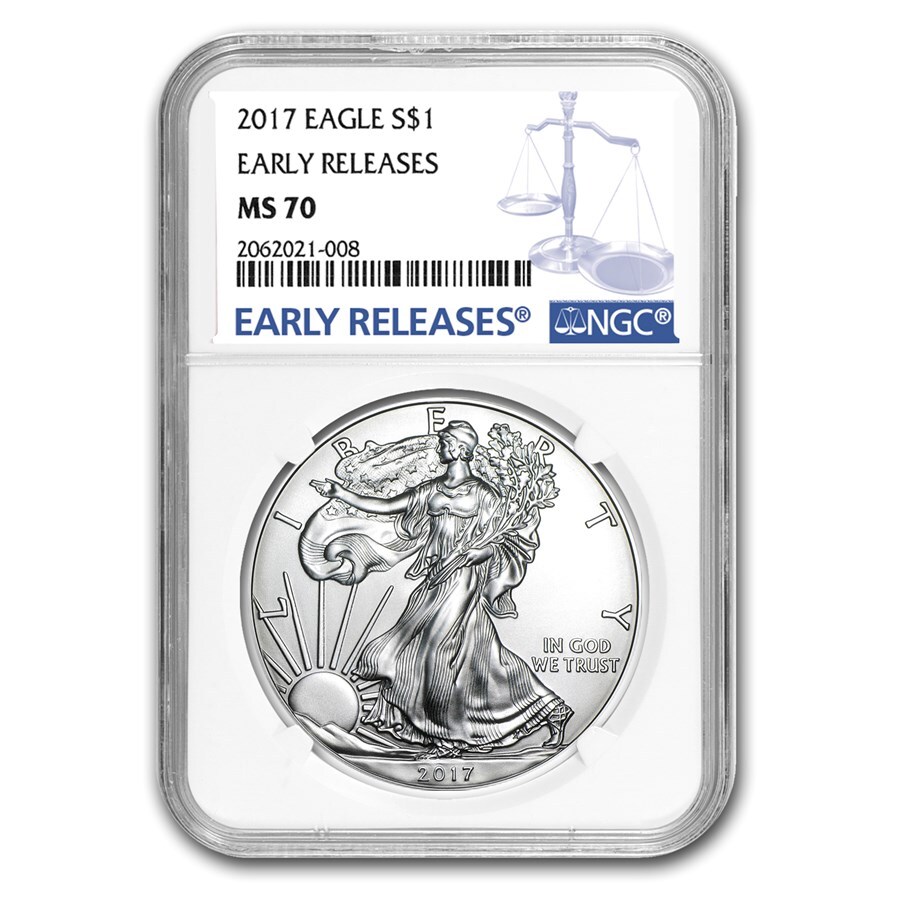 - [保証書・スラブ付き] 2017年 (新品) アメリカ「イーグル・ウオーキング リバティ」純銀 1オンス 銀貨 NGC MS70