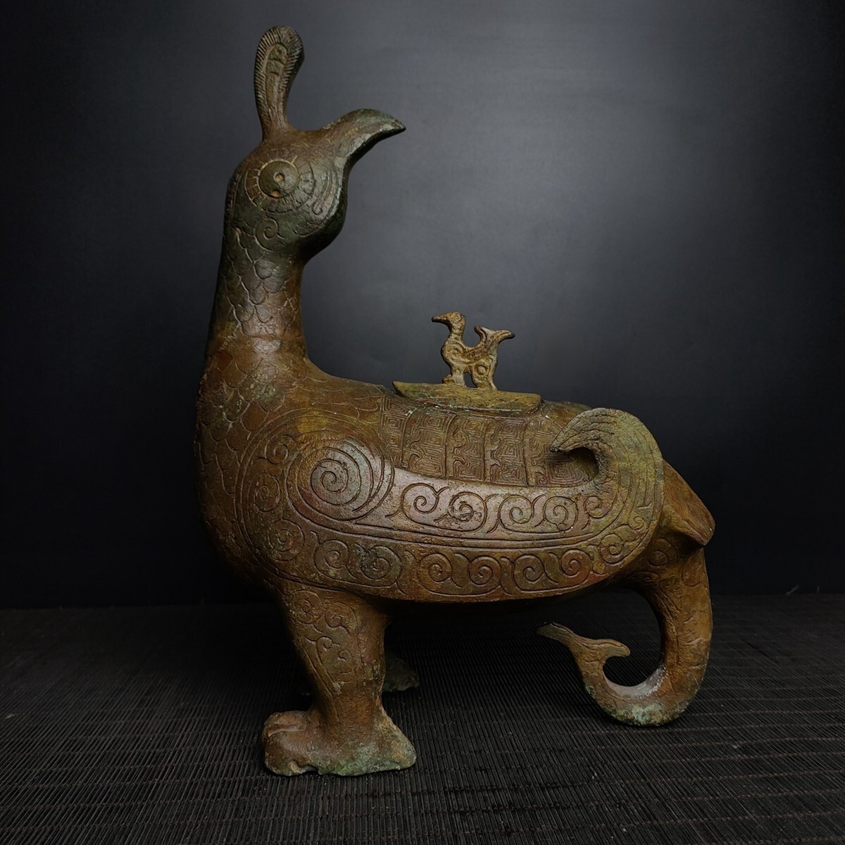 - 「商周時期 青銅器彫 回頭青銅銘文鳥尊」青銅器 置物擺件 賞物 中国古美術 旧蔵出
