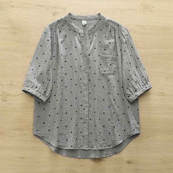 > c 2508 ダブルガーゼ フリーサイズ チュニック トップス ナチュラル 綿100% 通気性肌触り抜群 サラサラ ゆったり ドット柄 半袖2