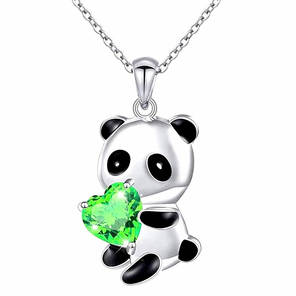 - 新品★送料無料★パンダ贈物ハート 翠玉エメラルド プラチナ仕上 925シルバーペンダント 誕生日プレゼント旅行夏海連休ギフト国内発送