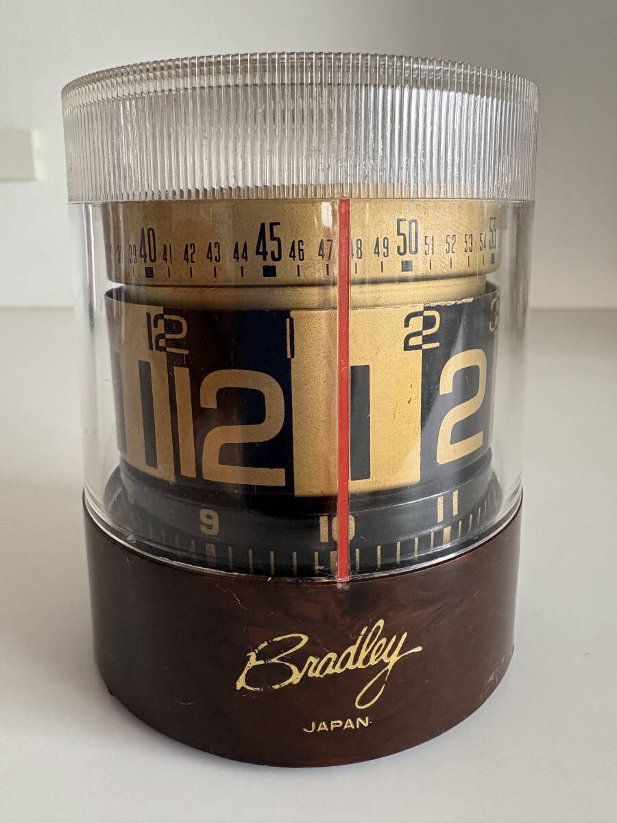 - 動作確認 Bradley JAPAN ブラドリー製 目覚まし時計 回転ドラム時計 ゼンマイ式時計 コレクターズ時計 飾り時計 置き時計