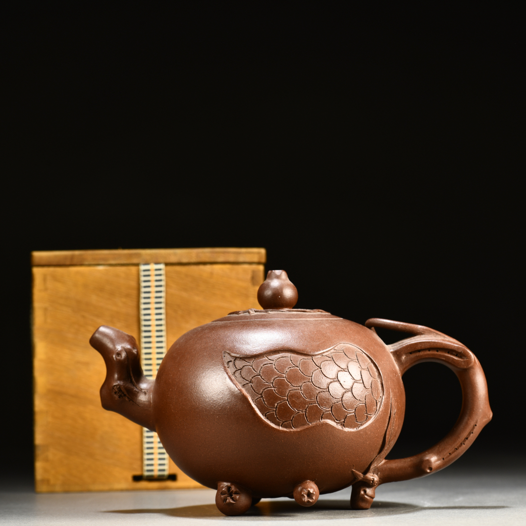 > 6330QN&8 中国骨董 人間国宝 [老紫砂多子多福壺 ] 紫砂壷 茶道具 中国宜興 朱泥 急須 煎茶道具