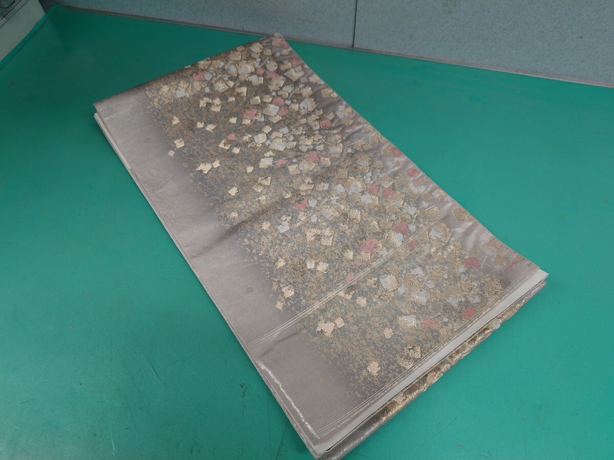 > ● 100 希少 【西陣証紙 268 島原織物】正絹 高級 六通 袋帯 金糸 金彩 華やか 近代的 模様 中古 ③