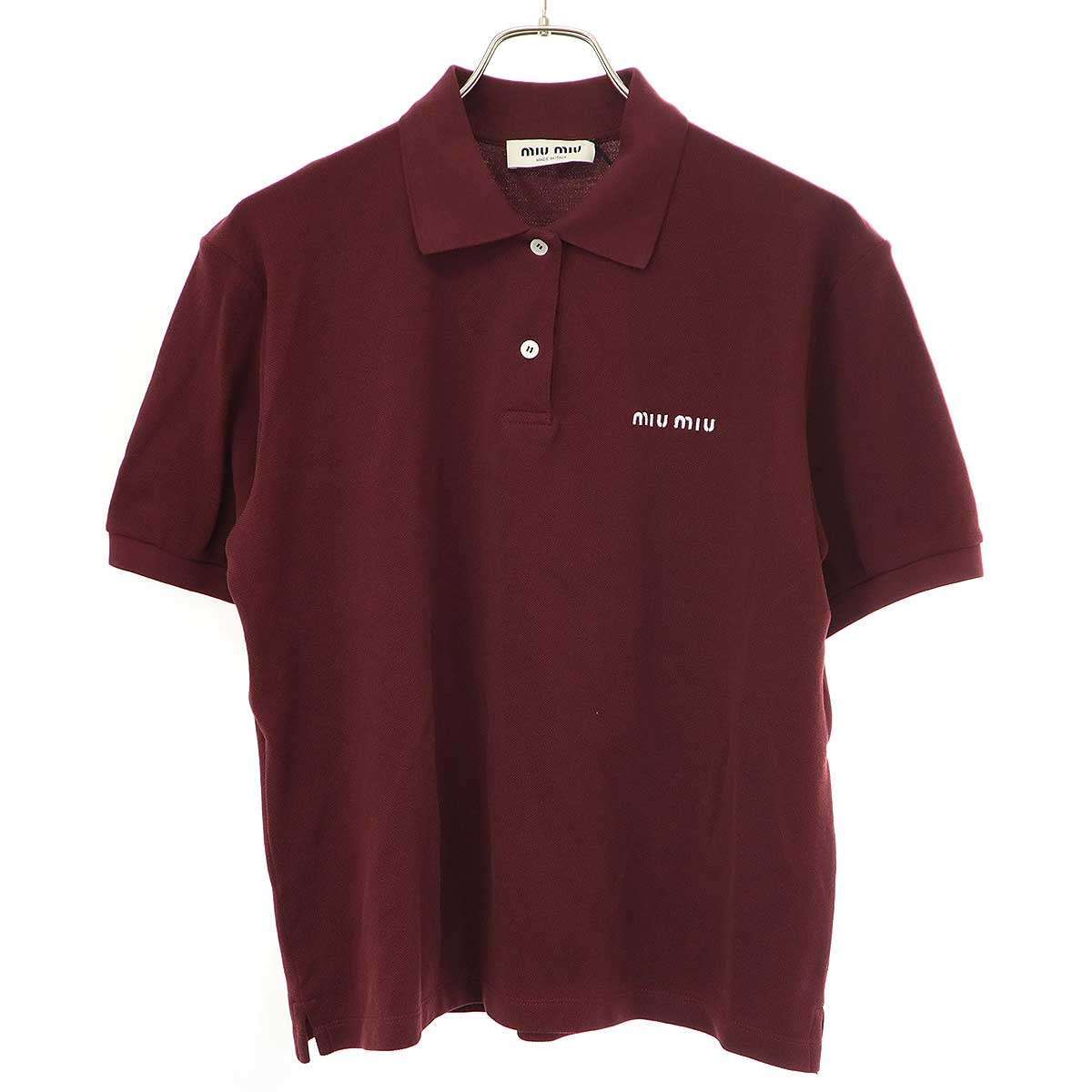 - miu miu ミュウミュウ Cotton Pique MIU Logo Polo Shirt コットンピケ ポロシャツ MJN535 14RW バーガンディ S ITG0VDL7OAU0