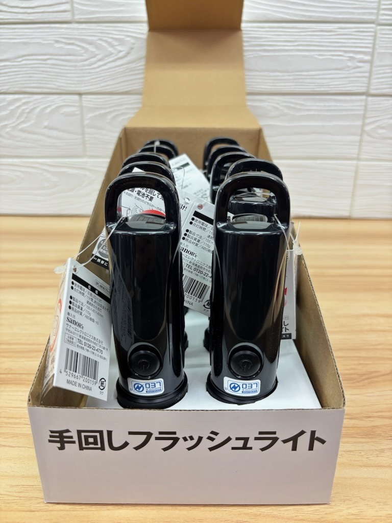 - A234 訳あり新品 サナー 10点箱売り 地震 防災グッズに!! 電池 電源不要 充電式 手回しフラッシュライト BK ハンドルを回して充電するだけ