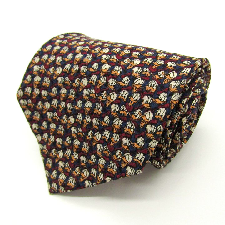 > ディズニー ブランド ネクタイ ドナルドダック 総柄 キャラクター柄 シルク 韓国製 PO メンズ ネイビー Disney