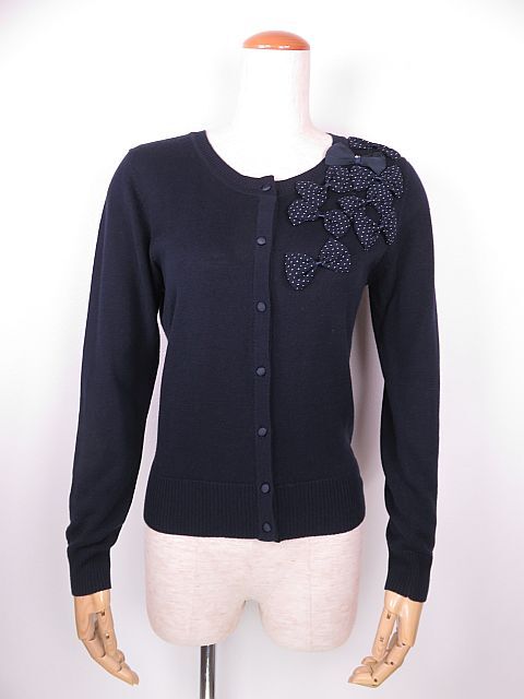 - 【送料無料】ギャラリービスコンティ 長袖ニットカーディガン ネイビー リボン付き 2/M