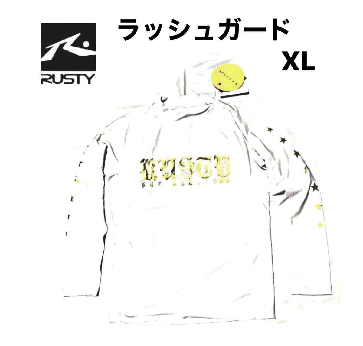 - ◆新品◆Rusty/ラスティ◆XLサイズ ロングラッシュガード、海.プール.川.山.アウトドア ホワイト/ゴールド定価¥5390(税込) UPF50+長袖◆