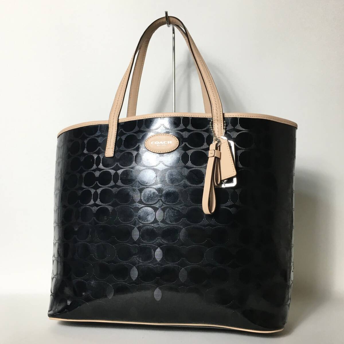 > 2507-121|美品|コーチ シグネチャー トートバッグ エナメル ブラック