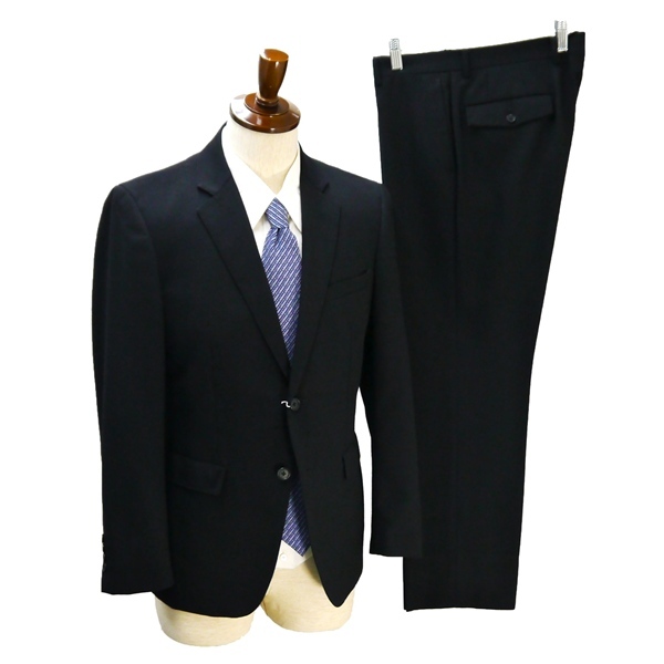 ・春秋対応。2つボタンシングル。背抜き。センターベント。フラップポケット。ネーム刺繍なし。開き見せ。