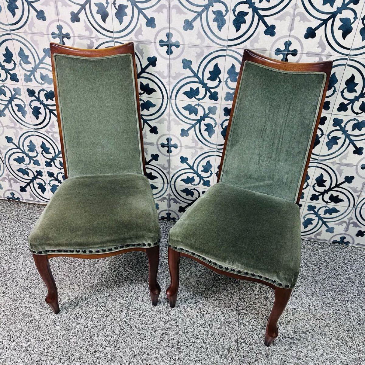 - maruni マルニ木工 ダイニング チェア 猫足 椅子 ヴィンテージ 2脚 木製フレーム グリーン ベロア アンティーク インテリア