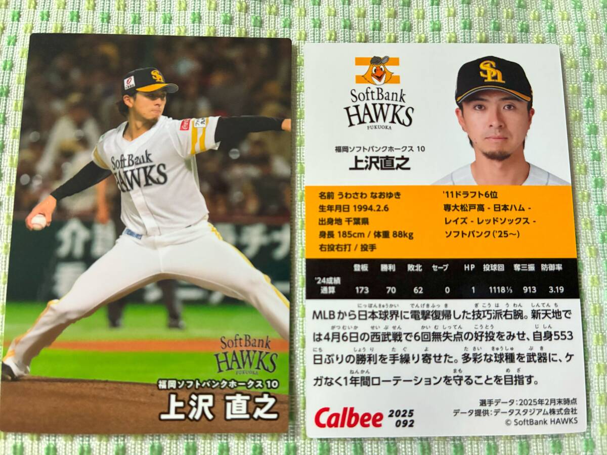 - 2025 第2弾 R-092 上沢 直之(ソフトバンク)レギュラーカード カルビー プロ野球チップス 最新版 新入荷 即決 匿名配送対応可 送料85円~