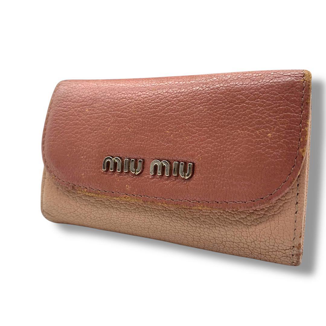 - ミュウミュウ キーケース レザー ベージュ ピンク バイカラー