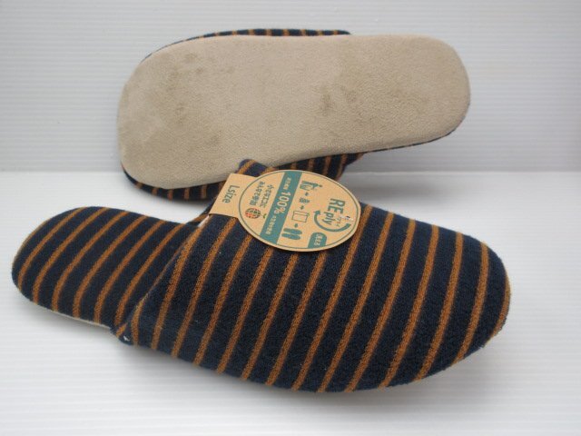 - 即決 L寸(25~27cm) リプライパイルボーダー np24903 ネイビー 前かぶり スリッパ 紳士 メンズ 室内履き サンダル ルームシューズ