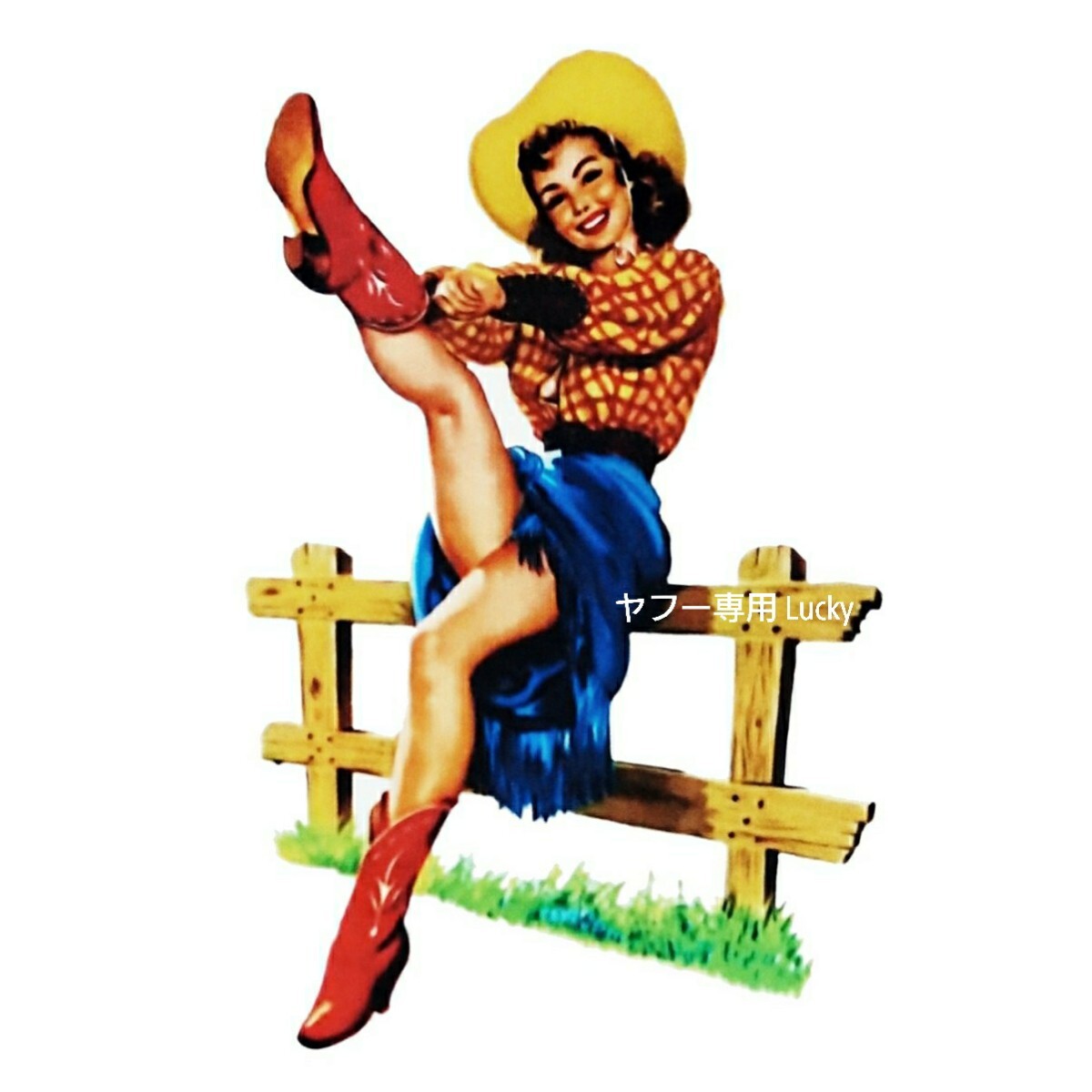 - ヴィンテージ レトロ 転写 ステッカー 車 カッティングステッカー シール シート デカール カウガール ピンナップ ガール 装飾 luk441