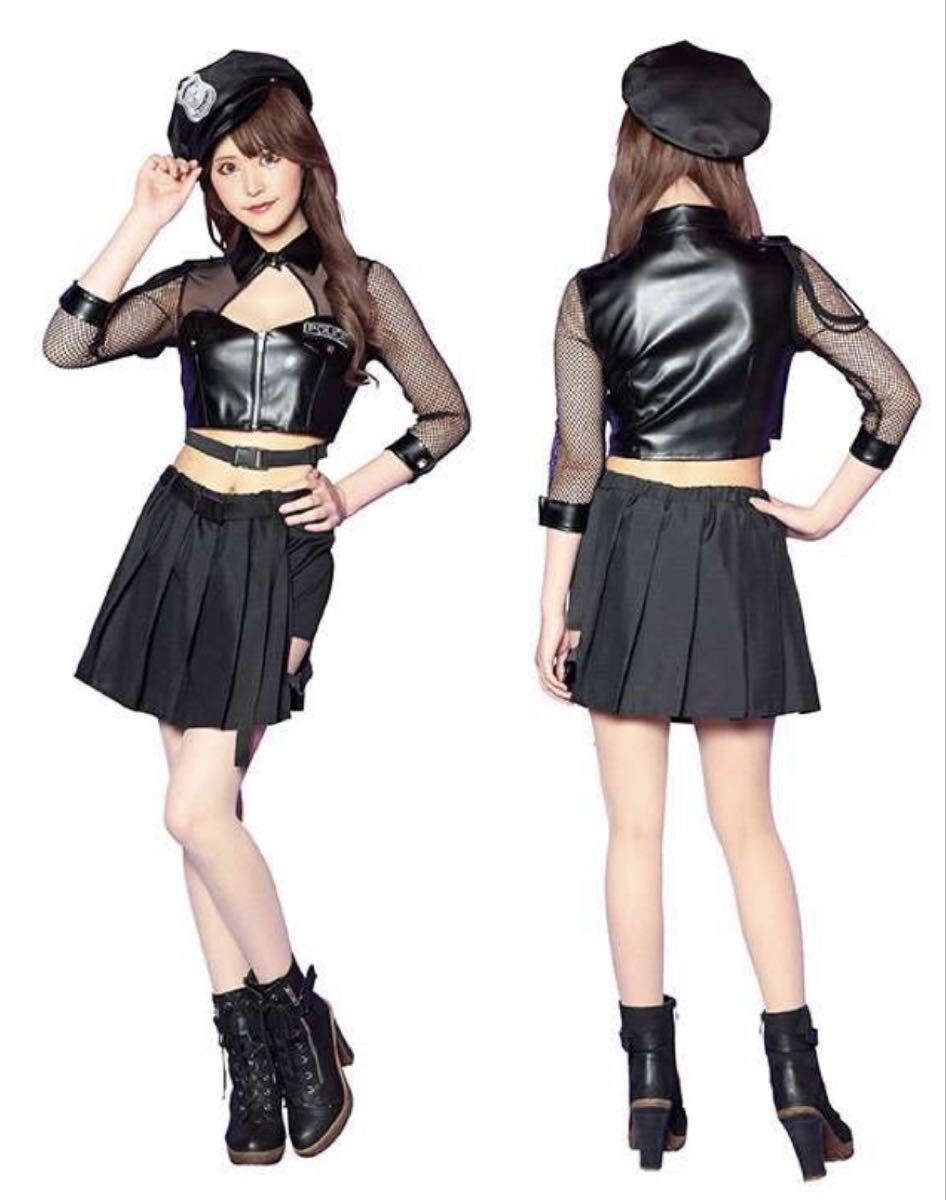 - レビュー特典 ハロウィン コスプレ レディース ビターブラック ガーターポリス キュート セクシー 女性用 警官 警察官 婦警 コスチューム