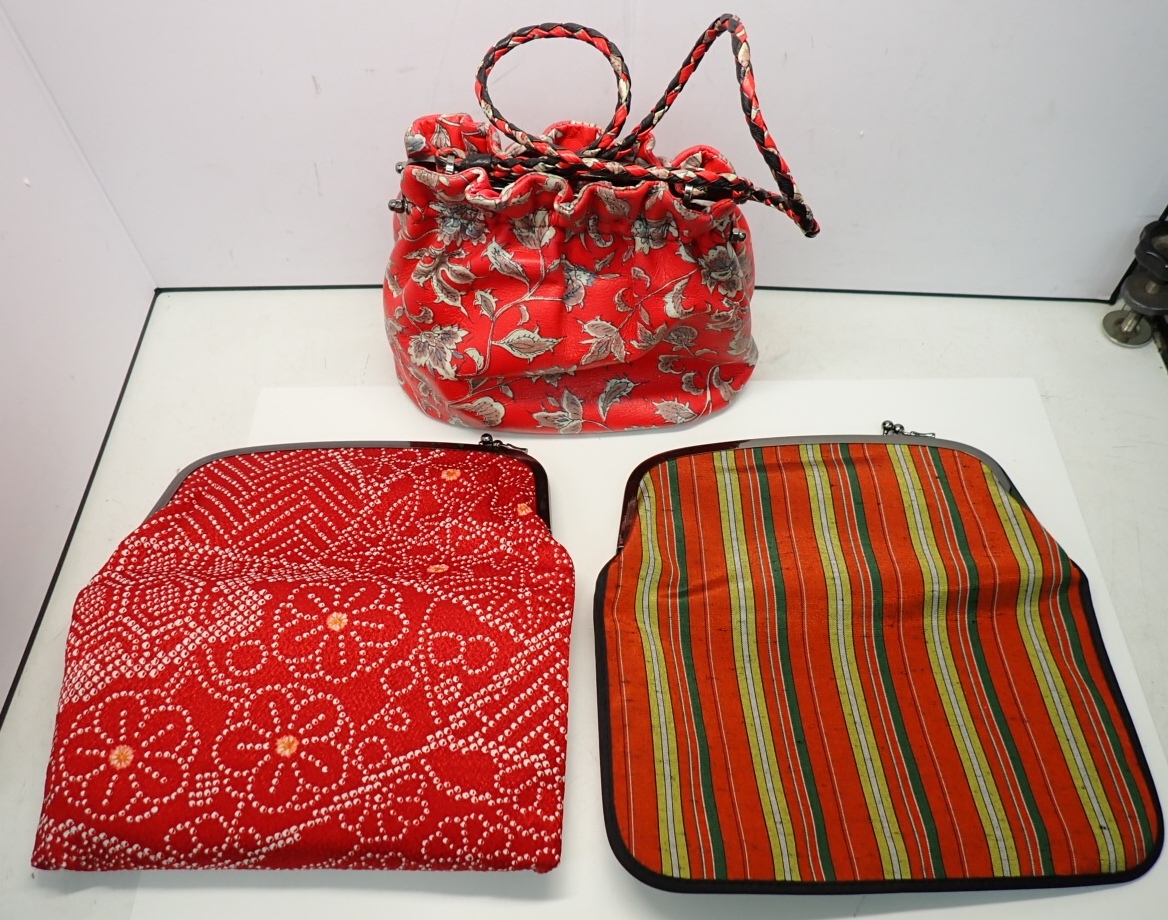 - レトロ がま口巾着 がま口ポーチ 和柄 小物入れ 3点まとめて