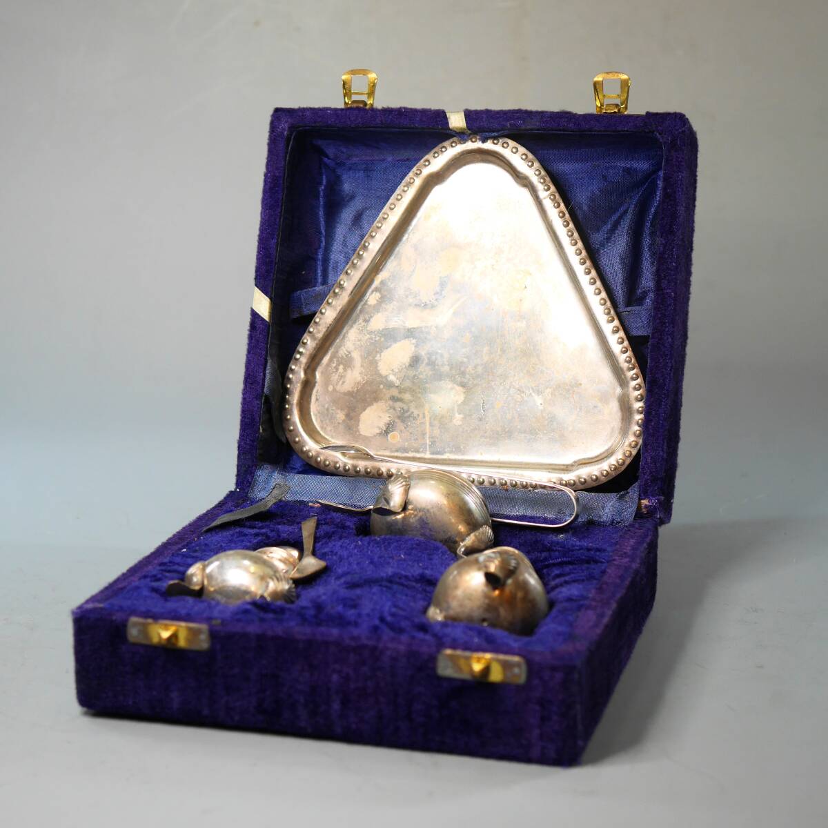 - 即決! シルバープレート 英国 アンティーク ソルト&ペッパー セット トレイ ケース付 イギリス 雑貨 西洋アンティーク I