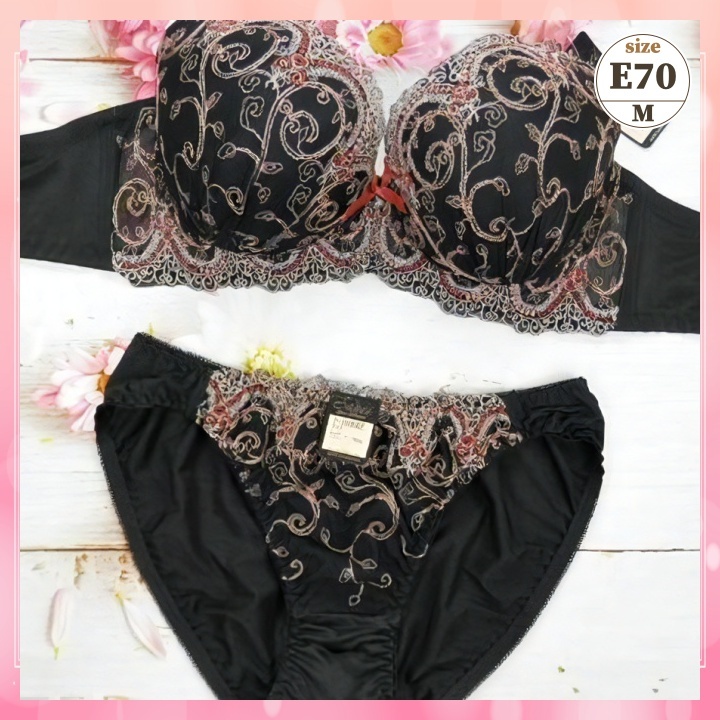 - Ze7013【E70】ブラショーツセット 丸胸 リボンアーチ 豪華ボタニカル 黒