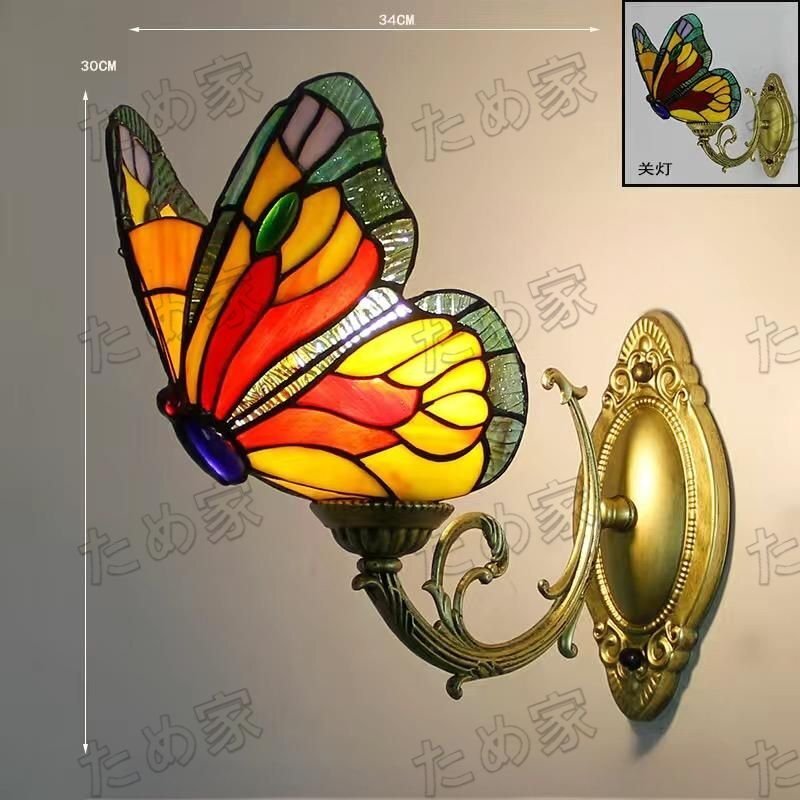 > 02 チョウチョウ ステンドグラスランプ ステンドグラス ペンダントライト壁掛け照明ガラス工芸品 豪華 単灯 電球つき